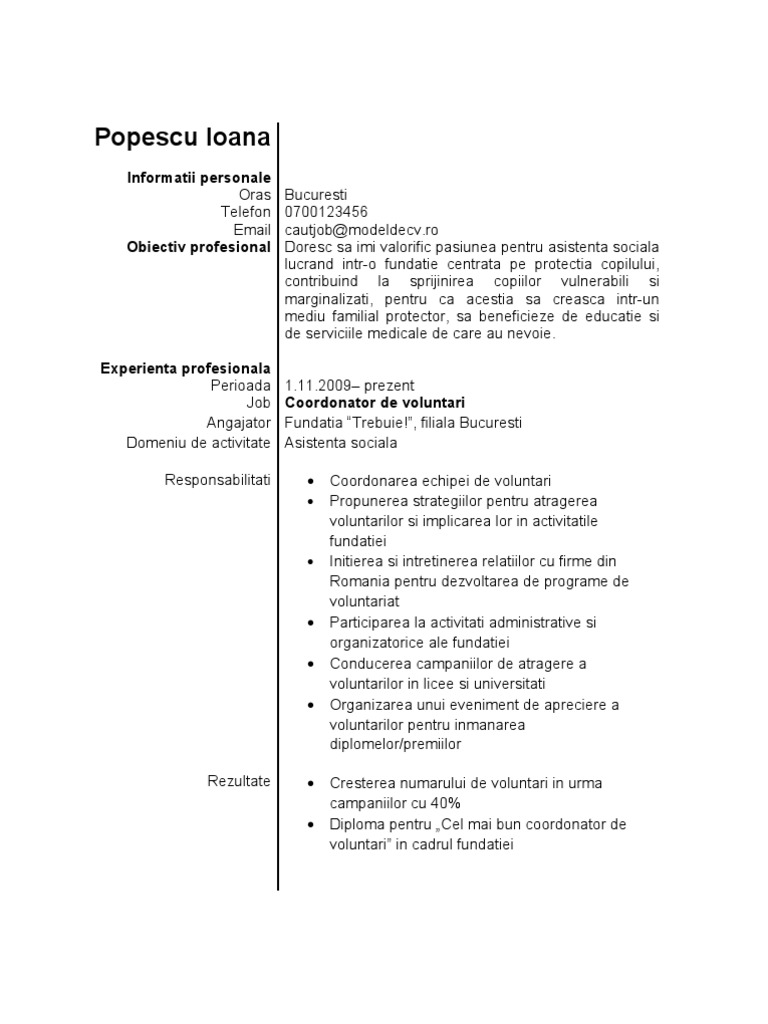 Cv experienta descarca model fara student.